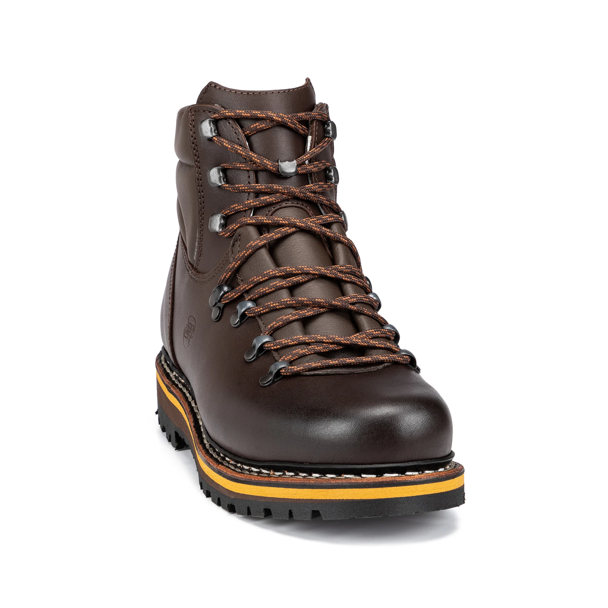 The lightweight, versatile Grünten is a hard-wearing boot built for the mountains, but still fit for comfortable everyday use. Its mid-cut double-stitched leather upper provides good freedom of movement plus protection for the ankle. And its padded cuff adds a further layer of comfort. The sturdy Vibram® Guffert sole ensures good grip and stability and helps prevent slipping in rugged terrain. And should it ever wear out, it can be easily resoled.